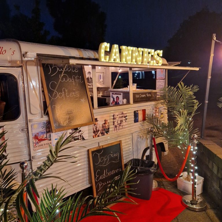 Der Typ H ist ein Hingucker für jede Feier. Mit diesem Oldtimer Foodtruck, fühlen sie sich wie in Cannes bei den Filmfestspielen.
